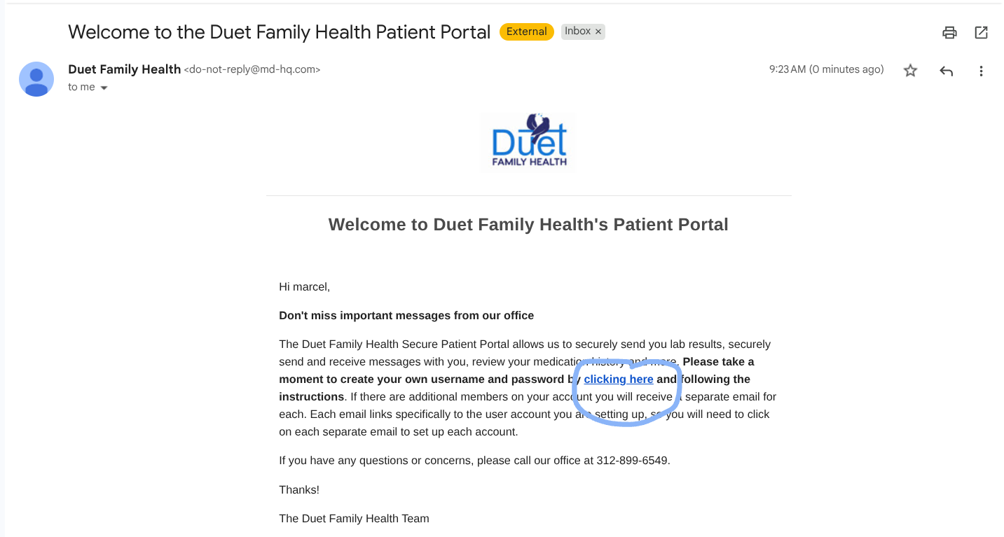 Setting up your Duet patient portal account